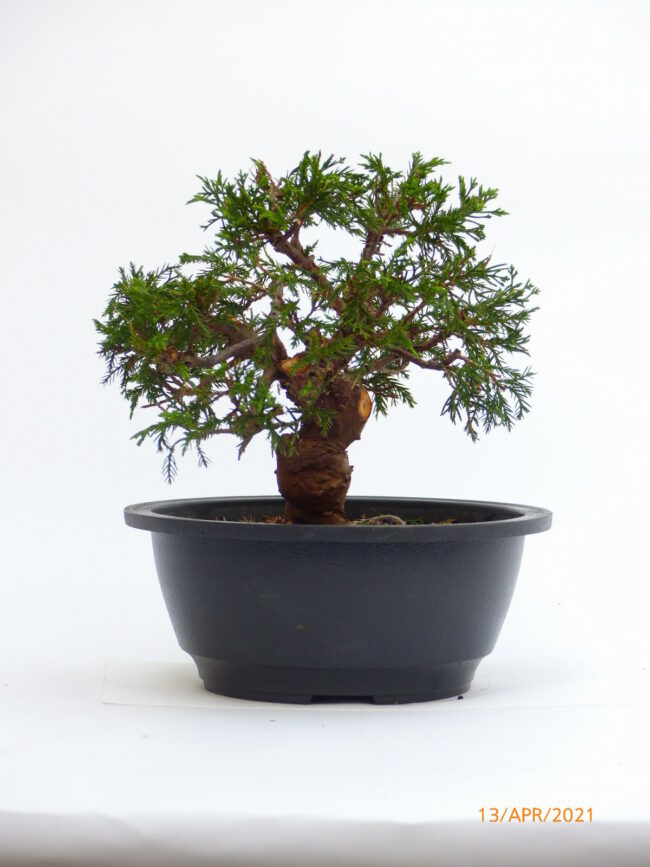 Der Wacholder steht ganzjährig im Freien an einem sehr hellen Platz, der optimalerweise zur Mittagszeit leicht schattiert ist. Er verträgt auch Temperaturen unter -10°C, sollte aber dann leicht geschützt (Wind), an hellem Ort überwintert werden. Gegossen wird, nachdem die Erde angetrocknet ist reichlich, wobei Staunässe zu vermeiden ist. Der Neuaustrieb muss immer wieder mit den Fingern zurück gezupft werden, damit der Bonsai seine kompakte Form behält. Während der Wachstumsperiode alle 14 Tage Bonsaidünger zugeben, im Winter wird nur alle 4- 6 Wochen gedüngt.